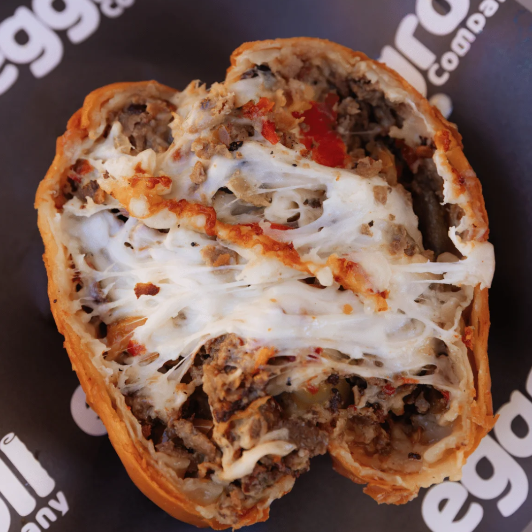 Juicy grilled steak layered with caramelized red onions and sweet-heat peppers, wrapped with a rich blend of mozzarella and provolone. Finished with our signature garlic cheese spread and fried golden for a bold, savory bite that defines the Eggroll Company experience.