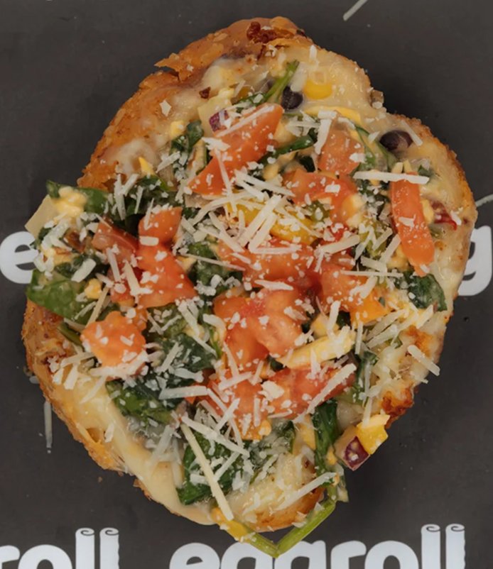 A vibrant mix of black beans, sweet corn, spinach, red onions, and peppers, blended with mozzarella, provolone, and creamy queso. Sealed with garlic butter and fried crisp. Combos include seasoned fries tossed in our signature spice blend.